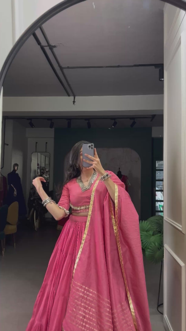 Royal Rani Pink Handcrafted Silk Lehenga Ensemble with Gota Patti Accents & Statement Dupatta